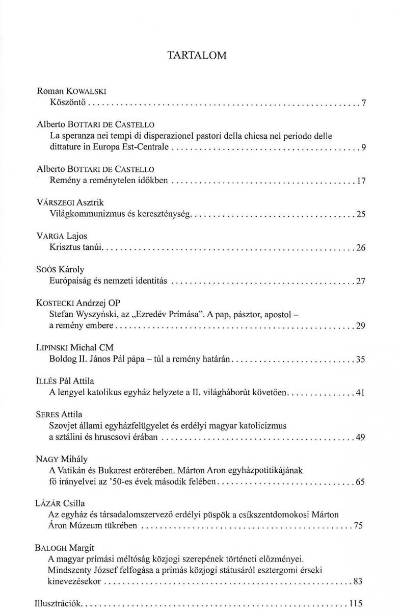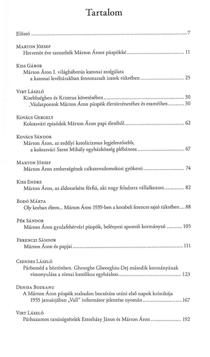 2014. október: Megjelenik az Ecce sacerdos magnus. Tanulmányok Márton Áron püspökké szentelésének 75. évfordulójára kötet. Tartalom
