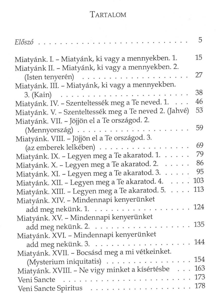 2014. november: Mons. Marton József nagyprépost gondozásában megjelenik Márton Áron püspök hagyatékát közlő sorozat tizedik kötete Miatyánk címmel. Tartalom