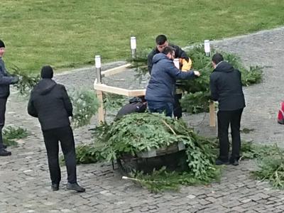 Adventi koszorú készült a gyulafehérvári székesegyház előtt Kerekes László segédpüspök, Hurgoi János irodaigazgató és Veres Stelian gazdasági igazgató tevékeny közreműködésével. Az első gyertya ünnepélyes meggyújtása szombaton, november 28-án este 6 órakor kezdődik.