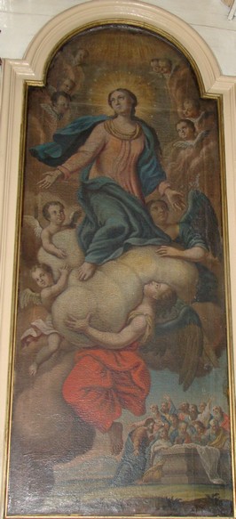 Fotó: a csíkkarcfalvai templom egykori főoltárának Mária menybevételét ábrázoló középképe