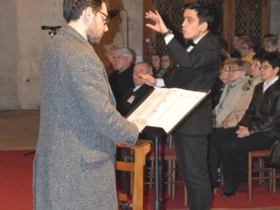 Következett a templomi hangverseny: 14 állomás, 14 elmélkedés, 14 kórusmű, egy út – a Márton Áron-emlékév jegyében, az erdélyi nőszövetségek kolozsvári lelkigyakorlatos talákozója keretében a Szent Mihály-templomban tartott koncert, amelyet a templom Szent Cecília kórusa tartott Potyó István karnagy vezényletével. Tizennnégy különböző kórusművet szólaltattak meg, a keresztút minden állomásához megfelelő hangulatú, tematikájú alkotást válogatva. A zeneszerzők közt volt a magyar Horváth Márton, Kocsár Miklós, Deák-Bárdos György, Kodály Zoltán és Orbán György, a nagy klasszikusok közül Haydn, Mozart, Lotti, és szerepelt Dan Mizrahi, aki Márton Áron cellatársa is volt, és zsidó hitű, a püspök úgy megihlette, hogy szabadulása után az ő emlékére komponálta Ave Mariáját – ezt Potyó István karnagy feldolgozásában hallhattuk. A hangverseny műsorának vezérfonalát a keresztút stációi képezték, elmélkedéseit Márton Áron gondolatai adták (az Imádkozzunk Áron püspökkel imafüzetből, amit a kolozsvári Verbum kiadó az idén jelentetett meg). Az elmélkedéseket, Márton Áron püspököt Laczkó Vass Róbert színművész szólaltatta meg.