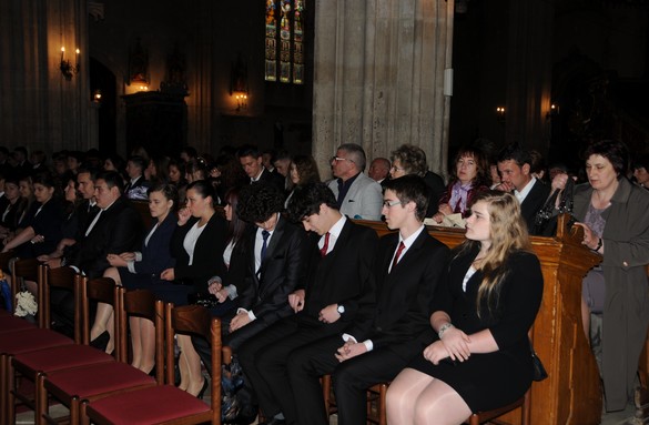 A kolozsvári Szent Mihály templom ajtaja nyitva, fogadta és feltarisznyázta a Báthory István Elméleti Líceum végzőseit, maradandót és biztosat adva mindenik lelkesedéssel teli fiatalnak. A ballagókért felajánlott szentmisében Kiss Endre iskolalelkész Isten teremtő szaváról beszélt, mely az egyetlen, amely “jó irányt ad életünknek”: ezért Istennel kell párbeszédet folytatni, őt kell beengedni életünkbe, mert az atyai szeretet, amellyel Isten elhalmoz, bizonyosságot, értelmet ad életünknek. Próbáljuk meg cselekedeteinket ”örökkévalósítani” azzal, hogy megpróbálunk Isten szemével tekinteni azokra, mert ”szép és jó élet csak Isten társaságában lehetséges”.