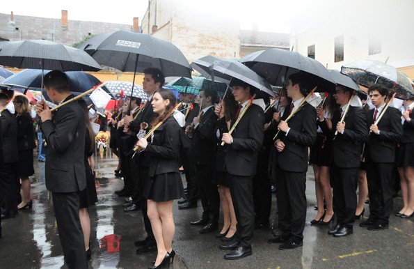 A folyamatosan szemerkélő eső ellenére is terv szerint zajlott le az ünnep, az iskola mögötti sportpályán tartotta meg a ballagást szombaton délelőtt a csíkszeredai Segítő Mária Római Katolikus Gimnázium. Az iskolából a huszadik végzős évfolyam keretében három osztály ballagott el.