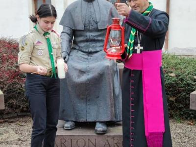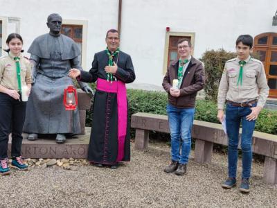 A Romániai Magyar Cserkészszövetség újjáalakulása óta évről évre részt vállalt a Betlehemi Békeláng szétosztásának szolgálatában. A lángot eleinte magyarországi cserkészek hozták Erdélybe, majd az elmúlt tíz évben, akárcsak idén, a bécsi lángosztó ünnepségen részt vett erdélyi cserkészek juttatták haza. Gyulafehérvárra ebben az évben is megérkezett a Betlehemi Békeláng, amit Borka Botond cserkészvezető két lelkes cserkésszel adott át Dr. Kerekes László segédpüspöknek.