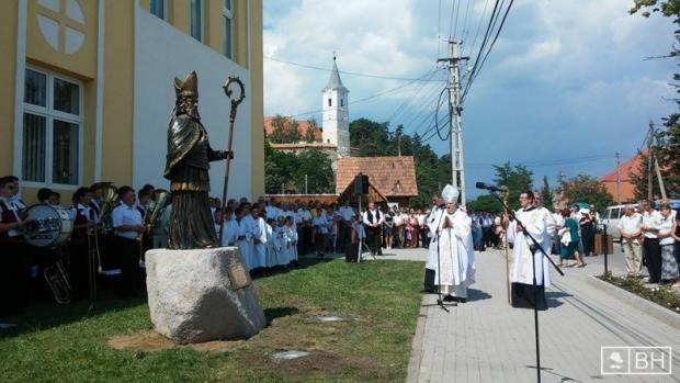 Temesvarihirek.ro: Megáldották Mártonffy György erdélyi püspök szobrát a székelyföldi Karcfalván