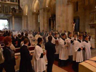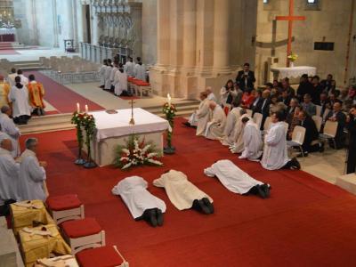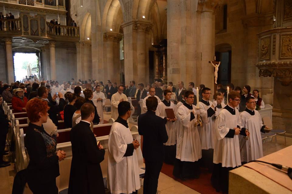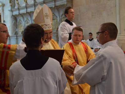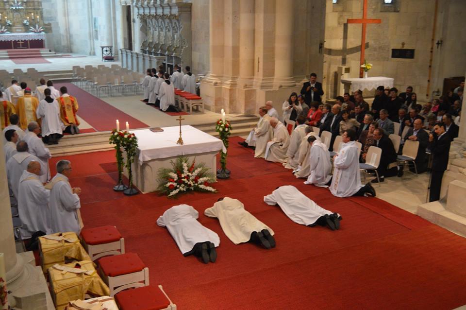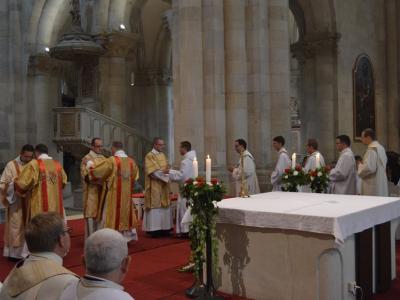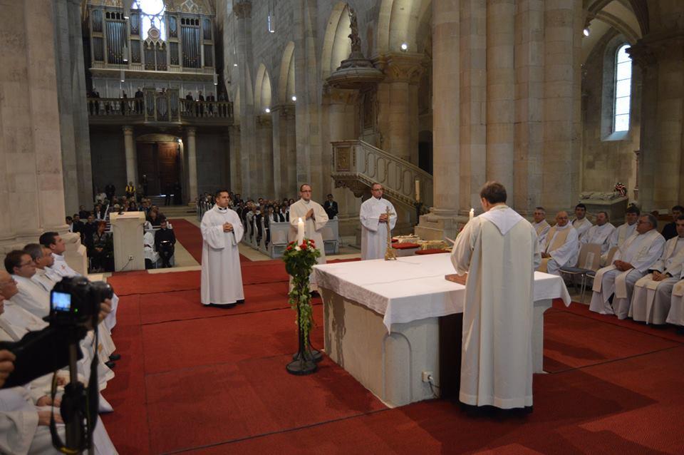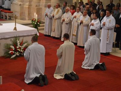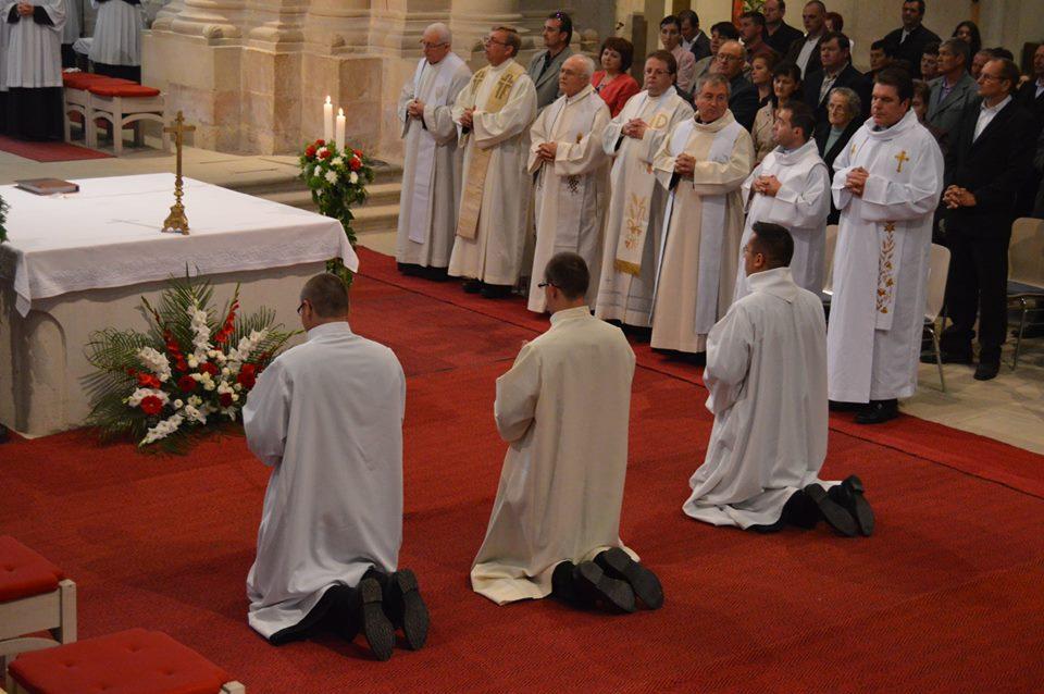 A diakónus szentelési szentmise de. 10 órától kezdődött. Az evangélium után Ft. Dr. Holló László rektor bemutatta a három jelöltet, akik Isten kegyelméből vállalták az egyházi rend első fokozatát.