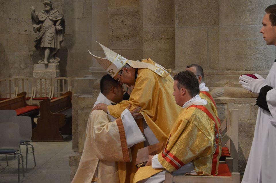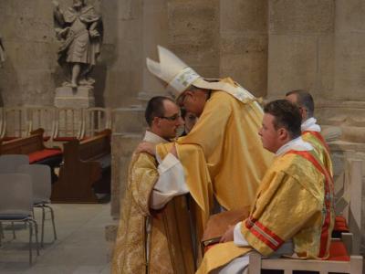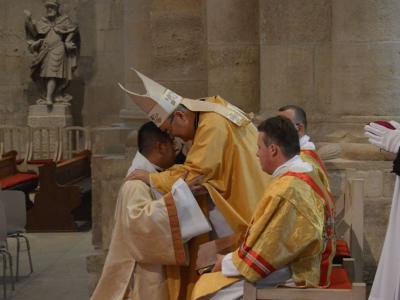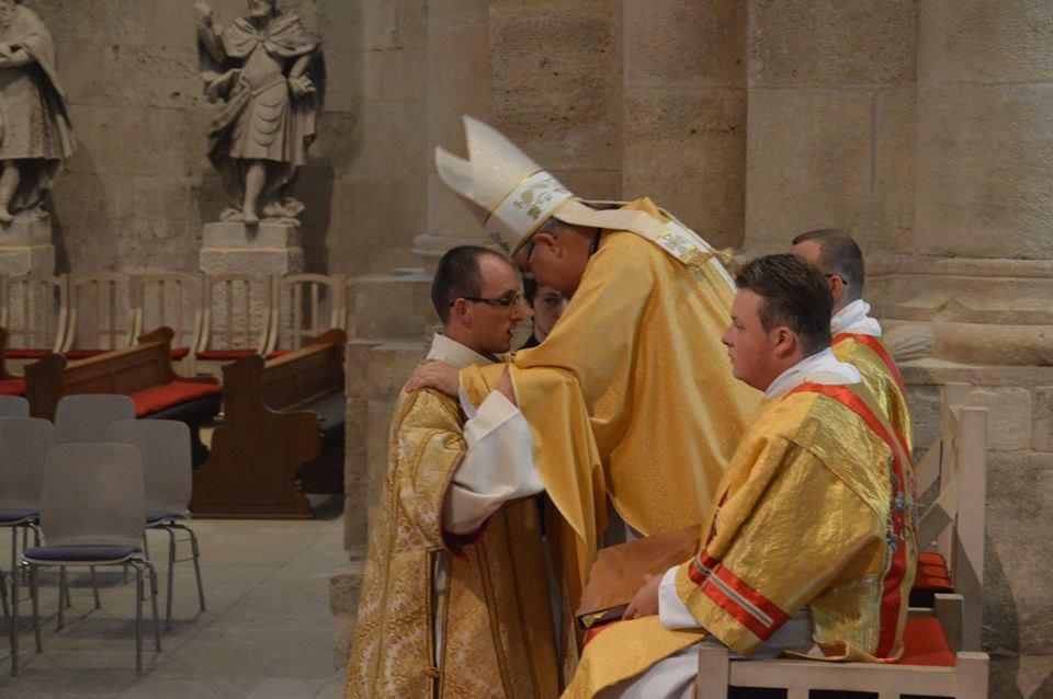Végül a püspök és a jelenlevő diakónusok békecsókot váltottak az újonnan szenteltekkel, kifejezve köszöntésüket és befogadásukat a diakónusi közösségbe.