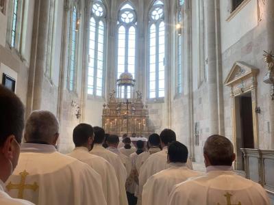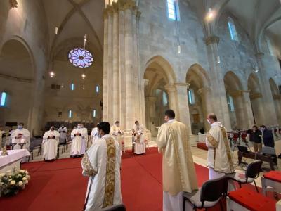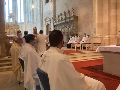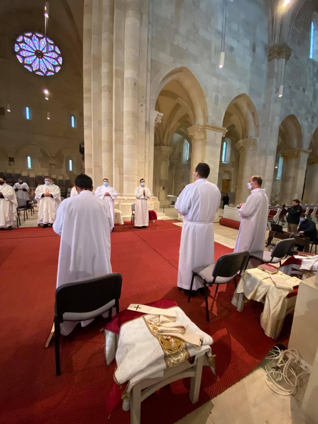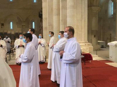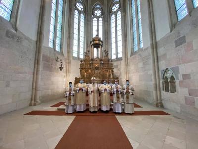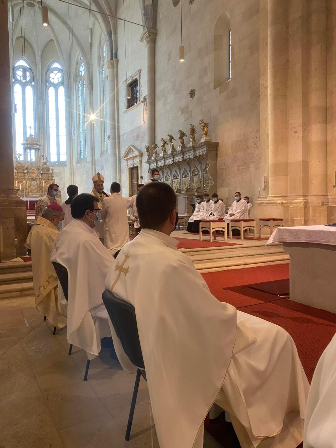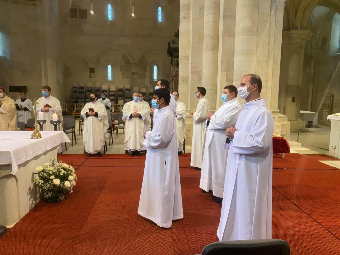 Kovács Gergely érsek december 8-án, Szeplőtelen fogantatás ünnepén a gyulafehérvári székesegyházban délelőtt 10 órakor kezdődött szentmise keretében diakónussá szentelt a főegyházmegye szolgálatára öt akolitust: a csíkszentimrei Demeter Istvánt és László Zsoltot, a ditrói Küsmődi Csongor-Ignácot, a segesvári Miklós Szilárdot és a máréfalvi Olasz Bélát. A zárt körben tartott szertartás elején, az evangélium felolvasása után a szeminárium rektora, András István mutatta be az öt jelöltet, akiket a főpásztor homíliájában buzdított, a diakónusi szolgálat lényegét vázolva. Ezt követően a jelöltek ünnepélyes ígéretet tettek, hogy minden feltételt vállalnak, ami a diakónusi szolgálattal jár, és ezt az ígéretüket Kovács Gergely érsek előtt azzal is megerősítették, hogy kezüket a kezébe helyezve fogadtak neki és utódainak engedelmességet. A szentelési szertartás következő mozzanata a Mindenszentek litániája, amelyet az önátadás jeleként a földre borulva hallgattak a szentelendők, majd a szentelés lényegi mozzanataként az érsek kezét egyenként a jelöltek fejére helyezve csendben imádkozott felettük és elmondta a felszentelő imát. A szentelés után az új diakónusok beöltöztek. Pappá szentelésükig a stólát a bal vállról keresztben jobb oldal felé átkötve viselik. Ezután vették át az evangéliumos könyvet mint a diakónusi szolgálatuk lényegi jelét. A szertartás végén a jelen levő püspökök, Jakubinyi Györy ny. érsek és Kerekes László segédpüspök, valamint a jelen levő papok, köztük a szeminárium elöljárói köszöntötték az új szerpapokat, jelezve a be- és elfogadást. A szentmise eucharisztikus liturgiájában az új diakónusok szolgáltak a főpásztor körül. Isten kísérje, segítse az új diakónusokat szent szolgálatukban!