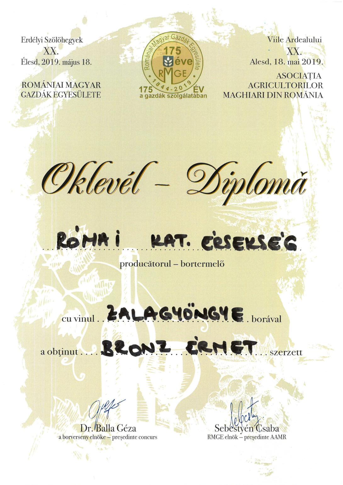 A Gyulafehérvári Római Katolikus Érsekség Tóth Csaba borász szakértelmét dicsérő hét borral nevezett be, amelyből kettő arany, egy ezüst és négy bronzérem minősítést értek el.