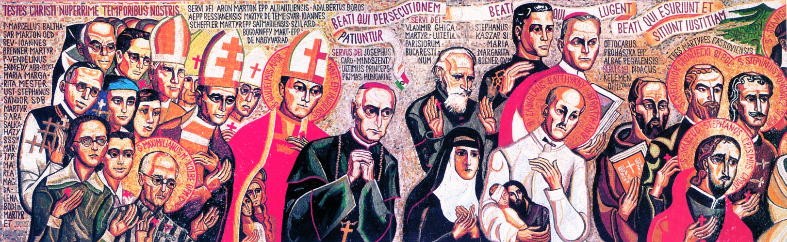 Márton Áron püspököt is ábrázoló mozaik falkép a Krakkó-Łagiewniki Isteni Irgalmasság bazilikában