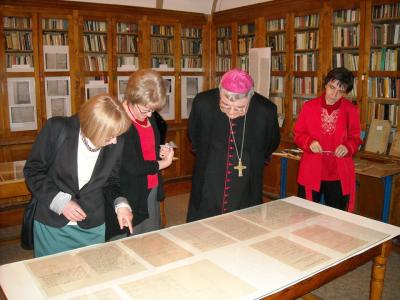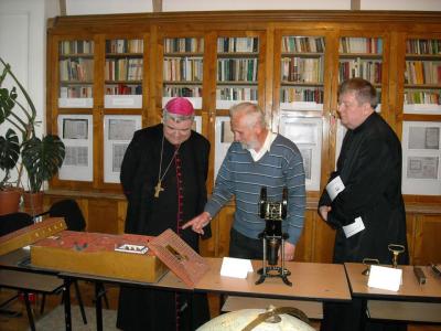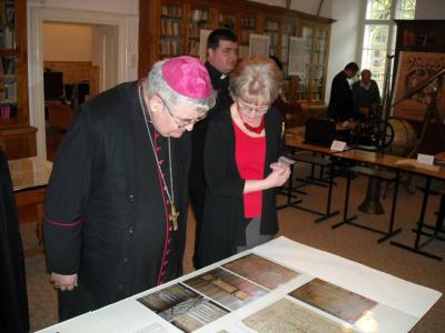 A sikeres előadást hatalmas tapssal köszönték meg a diákok. Ezt követően a főpapi látogatás lezárásaként az érseket és kíséretét végigvezették az iskolán, és bemutatták neki az esemény tiszteletére összeállított kiállításokat. Az iskola könyvtárának klubgalériájában nyílt meg az a gyűjteményes kiállítás, amely az iskola egykori diákjainak, tanárainak képzőművészeti alkotásait mutatja meg. Vaszary János, Diviaczky Rezső, Szopos Sándor, Szolnay Sándor, Póka Zsombori Erzsébet, Darkó László, Feszt László, Bordy Margit, Heim András, ifj. Kádár Tibor, Lukáts Mária, Kántor László és Guttmann Szabolcs, valamint a kiállítást szervező jelnelegi Báthorys rajztanár, Orbán István munkáit csodálhatják meg az érdeklődők. Az iskolában a kiállítókon kívül több neves képző- és alkotóművész végzett, de a válogatás így is lenyűgöző. Az alkalmi tárlatot látogatók a kiállított művek mellett portrét és rövid életrajzot találnak, amely segít az alkotót az iskolatörténetben behatárolni, elhelyezni. Van, amikor csak információs anyagot jelentetett meg a kiállítás szervezője, mert fontosnak tartotta a Kolozsvári Normál Rajzoda tanárát, Simó Ferencet, s olyan tanítványait, mint Székely Bertalant, Dósa Gézát, Klősz Józsefet, Sárdy Istvánt is bemutatni, ám őket alkotásukkal nem volt lehetséges. A képzőművészeti tárlatot kiegészíti a Váradi Éva történelemtanár által összeállított iskolatörténeti kiállítás a szomszédos teremben, ahol korabeli (18. századi) dokumentumreprodukciók mellett kiadványok sorakoznak, valamint a fizika szertárból idehozott korabeli eszközök (távcső, földgömb, kísérletek végzéséhez szükséges tárgyak) (ez utóbbiak Czilli Péter fizikatanár válogatásában).
