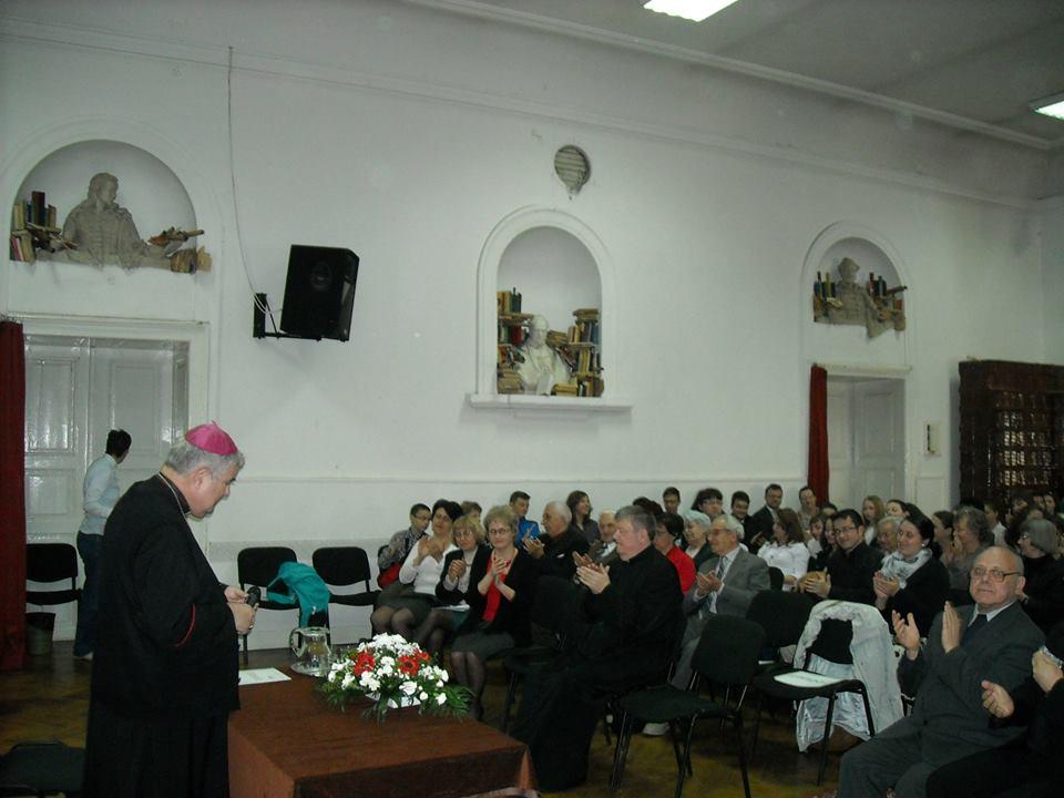 Valami hasonló esemény tanúi lehettek április 10-én a Báthory Líceum diákjai és tanárai. Jakubinyi György gyulafehérvári érsek látogatott el az iskolába (a kíséretében a kolozsvári Szent Mihály templom főesperes-plébánosával és a segédlelkészekkel), hogy a dísztermet zsúfolásig megtöltő diákoknak a hitről beszéljen. Tímár Ágnes igazgató köszöntője után az érsek Dicsértessék a Jézus Krisztus és Békesség Istentől köszöntéssel kezdte, majd a tőle megszokott stílusban, biblikus és történelmi merítéssel indította hiitről szóló előadását. Mondandójába vidám rabbinikus történeteket is szőve mutatta be, miért érdemes hinni, milyen kihívások, kísértések fenyegetik a hitet, s milyen az a hitvalló, hit szerinti élet, amely valóban sugárzó. Elmondta: életünk nagyobbik részét lényegében hallomásból, mások elbeszéléséből eredő tényekre alapozzuk, amelyek létéről személyesen nem győződhettünk meg, azaz az élet legegyszerűbb tényei vonaktozásában is hiszünk, elhisszük mások tanúságtételét: miért ne tehetnénk hasonlóan Isten vonatkozásában is. Azt is részletezte, az Istent tagadók, az ő „halálát” hirdetők milyen logikával gondolkodnak, s rámutatott e logika hiányosságaira. Végül kedvenc szentjének, Lisieux-i Kis Szent Teréznek, és kalkuttai Teréz anyának a példáját idézve mutatott konkrét utat a hiteles hittől vezérelt életre.