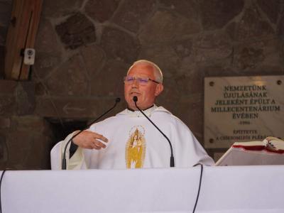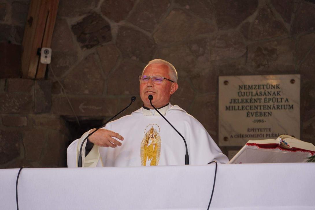 Ady Imádság háború után című versét idézte a segédpüspök, amely a mai helyzetre is találó: „Mindennek vége, vége, békíts ki magaddal s magammal, hisz te vagy a béke…” Az elmúlt időszak számunkra is a hit nagy próbája volt. Ebből a nehézségből kell felszínre vergődnünk, megtalálni az új helyzetben a helyünket, feladatunkat. Ebben igazított el a lujzikalagori születésű Salamon József gyimesbükki plébános, a búcsú szónoka.
