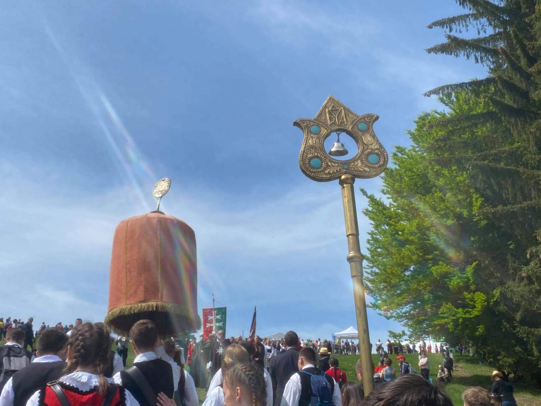 A szentmise végén felcsendültek a különböző himnuszok, énekelt imák, majd a búcsúsok levonultak a hegynyeregből. Kovács Gergely érsek leérkezvén külön megköszönte a Segítő Mária Katolikus Líceum diákjainak a szolgálatot: ők képezték a kordont, ők vitték, mint minden évben, a labarumot és a kisbazilika jelvényt.
