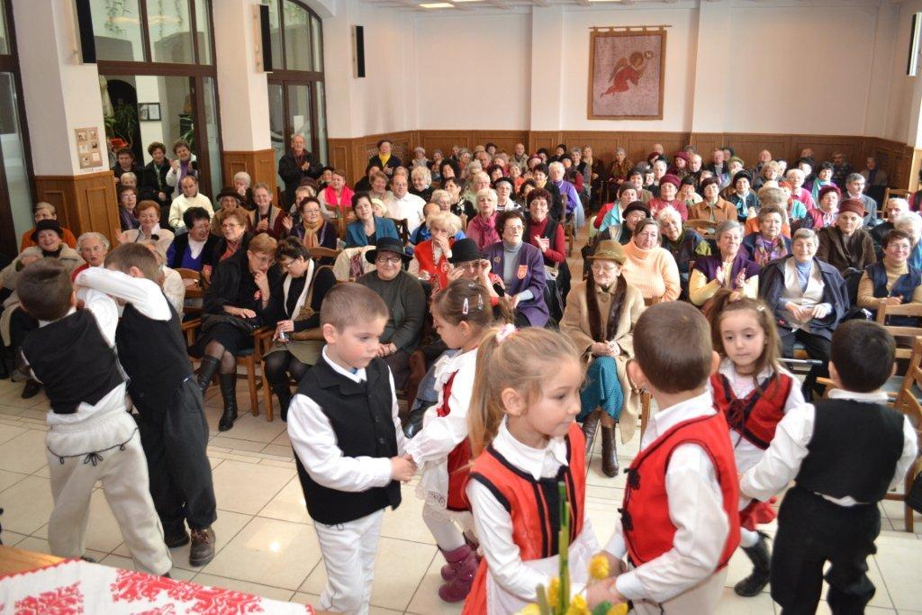 Déli 12 órakor imádsággal folytatódott a rendezvény, amelynek során a betegekért is könyörgött Palcău Augustin marosjárai plébános, aki a helybéli óvodásokat is elhozta, hogy Demeter Katalin Márta óvónő vezetésével színes műsorral, népi gyermekjátékokkal lepjék meg az időseket.