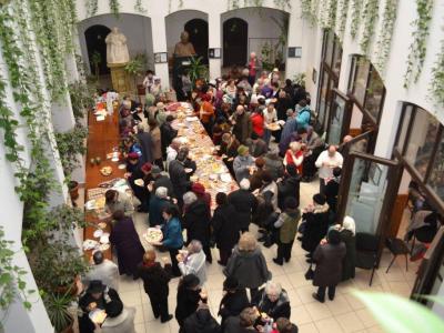 Petrozsényben 9 órától kétnyelvű szentmisén vettek részt a betegek a Szent Borbála templomban, majd a Caritas székhelyén vártuk őket meleg teával, szendvicsekkel és süteményekkel, amelyet a templomba járó asszonyok készítettek kimondottan erre az alkalomra. Itt megmértük a résztvevők vérnyomását és vércukorszintjét, amelyhez a tesztcsíkokat adományba kaptuk.