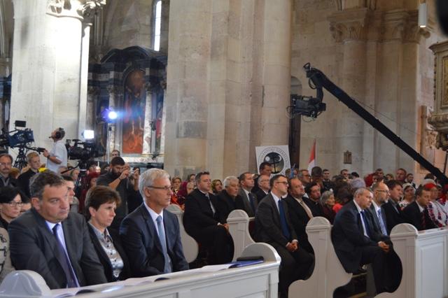 Soltész Miklós egyházi, nemzetiségi és civil társadalmi kapcsolatokért felelős magyar államtitkár beszédében elmondta: a rekordok könyvébe illene, hogy a Securitate 75 ezer oldalnyi feljegyzést készített Márton Áronról. Az államtitkár arra világított rá, hogy a püspök bűne az volt, hogy rávilágított a liberalizmus, a bolsevizmus és a fasizmus egyaránt elfogadhatatlan ideológiájára. Úgy fogalmazott: a látszólag különböző ideológiákban az a közös, hogy tagadják Istent, és nevetségessé teszik az Isten tiszteletét.