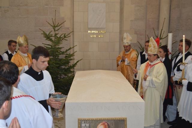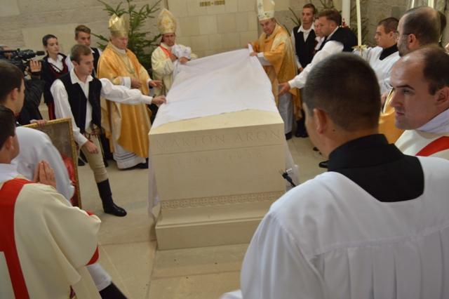 A szentmise végén Miquel Maury Buendía apostoli nuncius és Jakubinyi György érsek leleplezte, majd a nuncius megáldotta a kőszarkofágot, melybe Márton Áron földi maradványait helyezték, a lucernáriumot Tamás József segédpüspök végezte. A szertartás alatt nyolc csíkszentdomokosi fiatal állt őrt Márton Áron kőszarkofágja mellett.