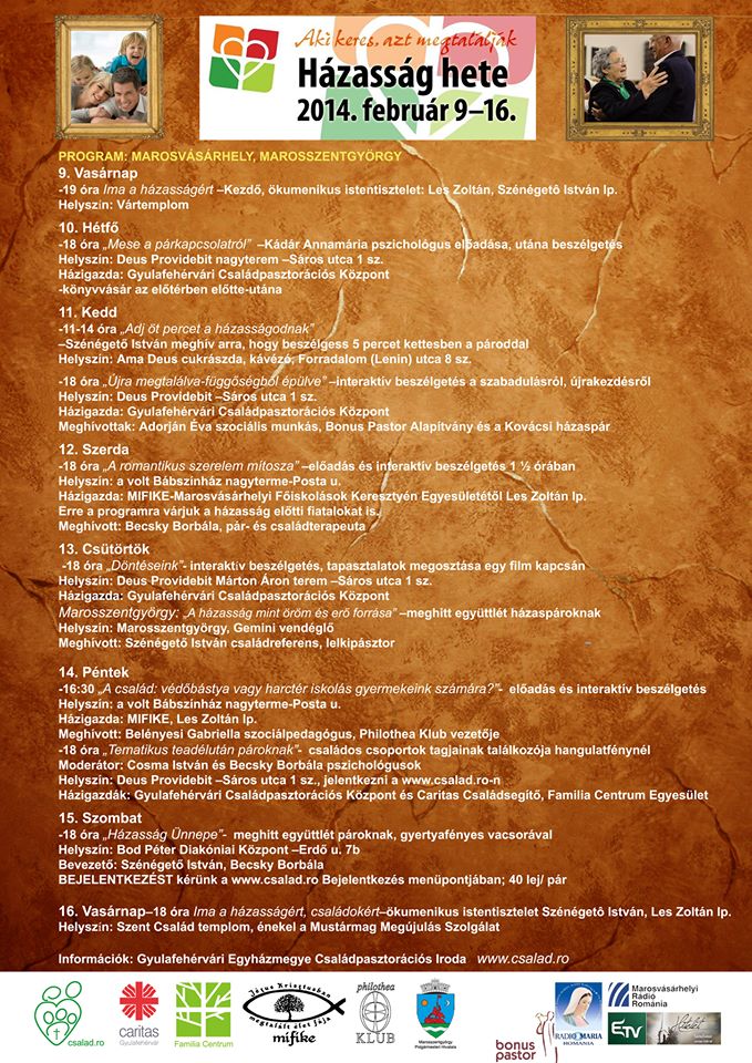 Információk: Gyulafehérvári Egyházmegye Családpasztorációs Iroda www.csalad.ro