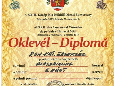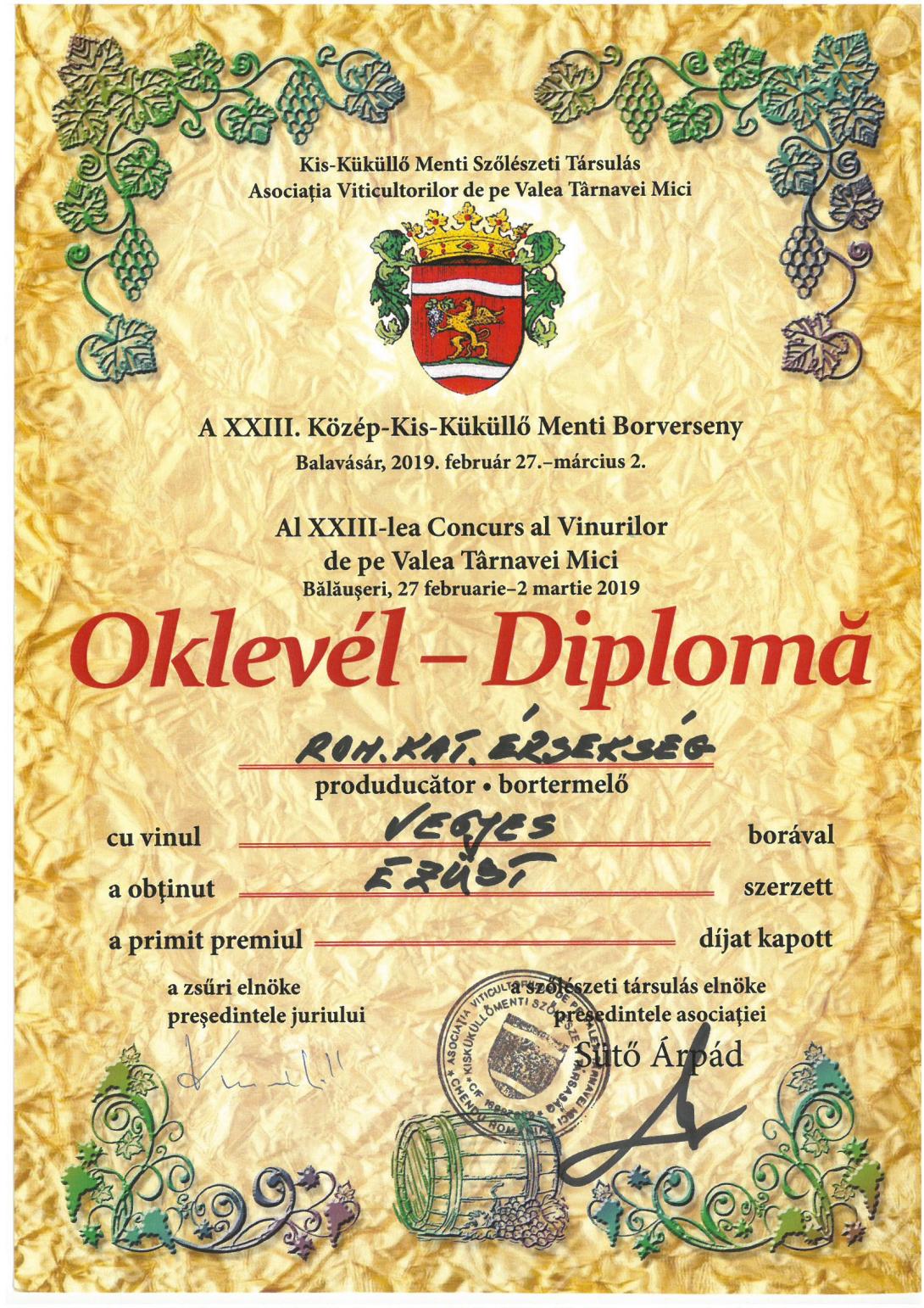A Gyulafehérvári Római Katolikus Érsekség Tóth Csaba borász szakértelmét dicsérő olaszrizling, valamint a Kövér, a Szürkebarát és az Ottonel Muskotály összetételőből származó érsekségi szőlészetből nyert borok ezüst érem minősítést kaptak.