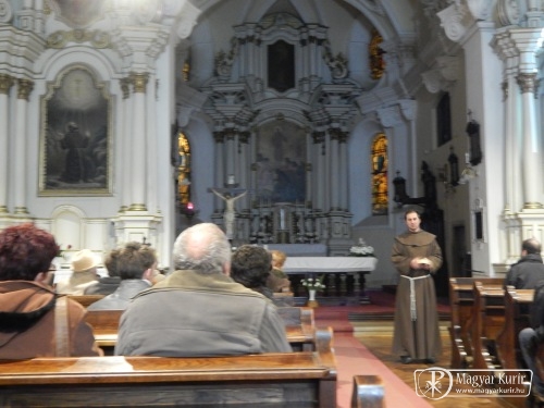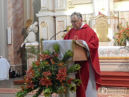 A zarándokok a börtönmúzeum meglátogatása után szentmisén vettek részt a város Borromeo Szent Károly-templomban. „Vértanúk nyomában járunk” – mondta szentbeszédében Csató Béla csíkszentkirályi plébános, aki szeminaristaként Márton Áron tanítványa volt. Felidézett egy, a püspöktől hallott történetet, mely szerint a szigeti börtönben azt kérdezték Márton Árontól, hogyan lehet az, hogy az ott raboskodó papok, esetenként akár kevésbé műveltek, mégsem veszítik el a helyes irányt. „Aki rendszeresen olvassa az evangéliumot, nem véti el” – válaszolta Márton Áron. A szónok azért fohászkodott szentbeszéde végén, hogy a lélek erejével az evangélium szerint alakítsuk életünket.
