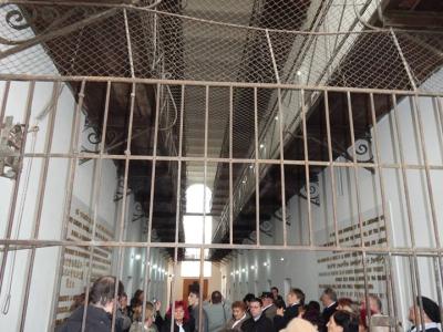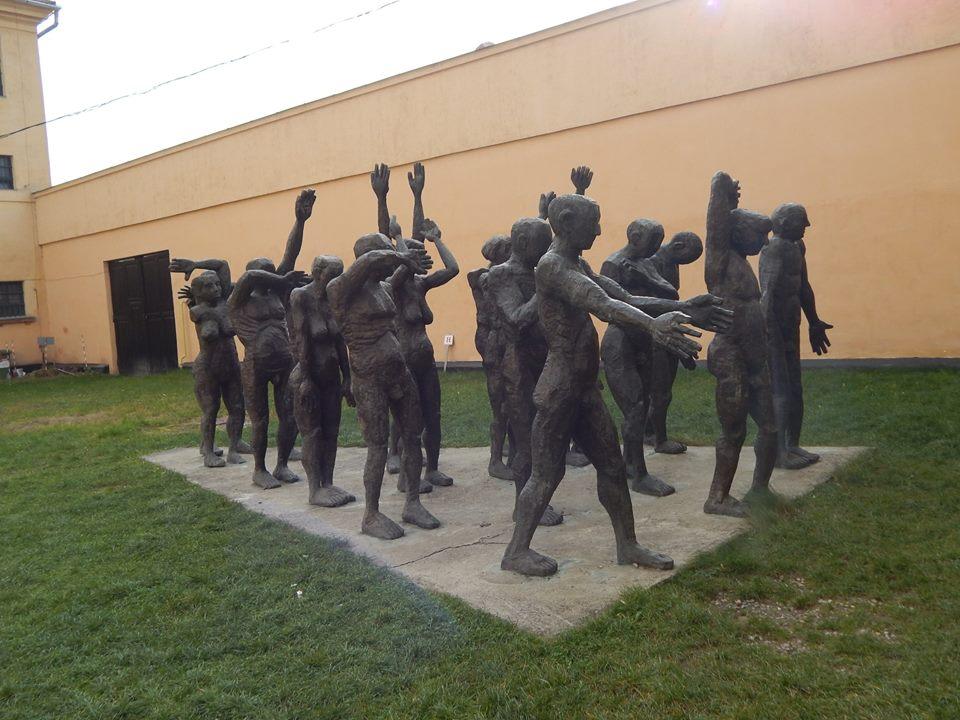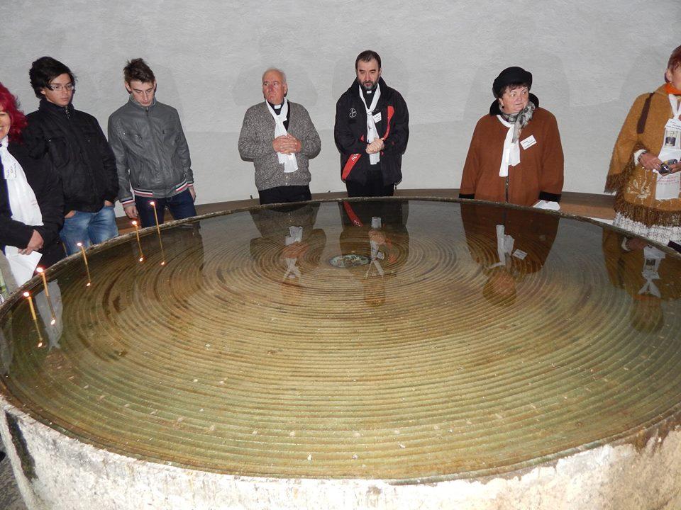 A csoport tagjai a börtön udvarán kialakított katakombákra emlékeztető ökumenikus kápolnában gyertyát gyújtottak és imádkoztak a diktatúra áldozataiért.