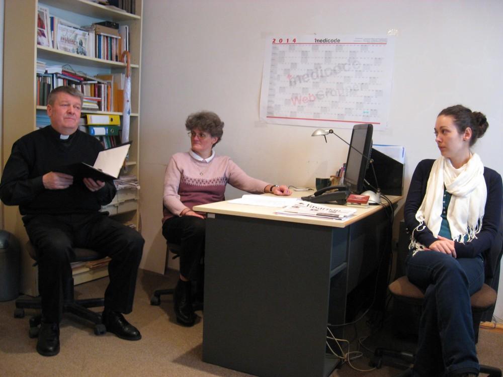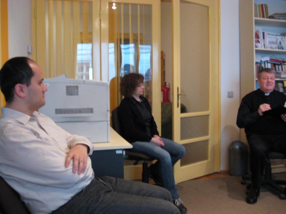 December 17-től sűrűsödik a karácsonyi készület; a II. vatikáni zsinat liturgikus reformjai óta kiemelt jelentőségű a december 17–24. közé eső hét. A készületnek ebben az utolsó szakaszában látogatta meg Kovács Sándor kolozsvári főesperes-plébános a Vasárnap és Keresztény Szó szerkesztőségét, hogy mint a Verbum Keresztény Kulturális Egyesület kuratóriumának elnöke, a munkatársaknak célzott gondolataival segítsen az ünnepi készületben, s egyben szolgálatuk idei mérlegét is megvonni. A főesperes a főbb adventi evangéliumokat vette számba, mindenik kapcsán kiemelt néhány továbbgondolásra érdemes üzenetet, amely segítheti a szerkesztőség minden munkatársát, a kicsiny, de erejét megfeszítve dolgozó csapatot abban, hogy újabb fogódzókat találjon tevékenysége lendületes végzéséhez. Az elmélkedést teázás követte, majd a szerkesztők az évvégi utolsó lapzártába merültek, Kovács Sándor pedig azzal búcsúzott tőlük, hogy a karácsonyi szentmisén való találkozást követően a házszenteléskor látogat el újra a szerkesztőségbe. (bm)