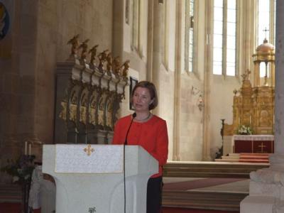 Minderről Márton Judit építész számolt be, nem hallgatva el a lezárt többéves periódus megpróbáltatásait. Örömét és tiszteletét fejezte ki többek között Mircea Hava gyulafehérvári polgármester. Hegedüs Csilla, az RMDSZ kulturális főosztályának ügyvezető alelnöke a szakmabeli szemével értékelte a munkát, kiemelve az érsekség hozzáállását, ami garanciát jelentett a támogatóknak, hiszen ha az erdélyi római katolikusok vezetői úgy gondolták, hogy ezt a munkálatot végigviszik, akkor a közösség politikai vezetőinek erre a jövőbe vetett hitre és bizalomra kell hagyatkozniuk.