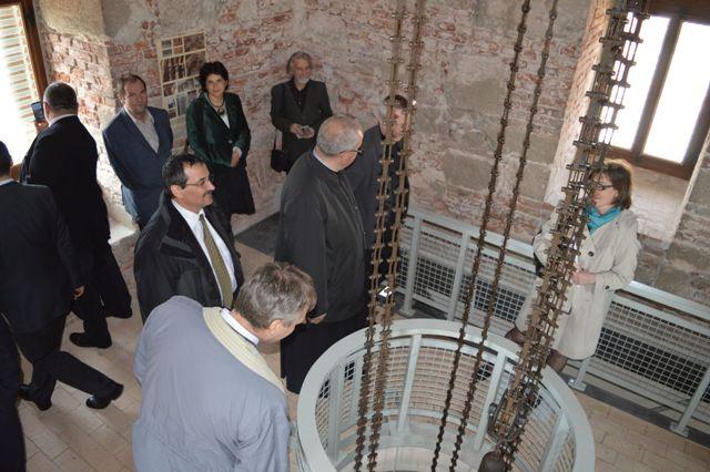 A déli torony belső tere több szinten kiállítási térként szolgál, az ott berendezett kiállítást Hegedüs Enikő művészettörténész mutatta be románul és magyarul a húszas csoportokban felkapaszkodó látogatóknak. A művészettörténész Vass Csongor levéltárossal együtt értő magyarázattal kísérve kalauzolta az érdeklődőket a Márton Áron lakosztályba is, ez a látogatás koronázta meg a történelmi élményt.