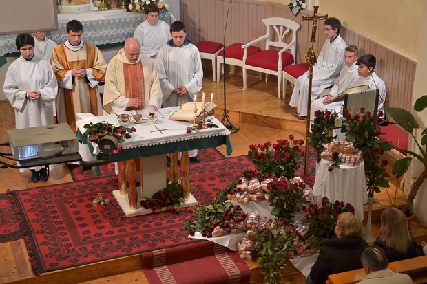 Közösségünk szereti ezt az ünnepet. Tele lesz a templom, s többféle módon tartjuk: van, hogy szentmise keretében, máskor Szent Erzsébet litánia van, vagy a gyermekek-ifjak tanulnak be kis színdarabot, Szent Erzsébet életét felidézve. Ami mindig állandó: rózsával díszítjük az oltárt, majd megáldjuk és kenyeret-kalácsot szentelünk. Az áldás után ingyen elvihető azzal a feltétellel, hogy az elvitt kenyér felét valakinek tovább kell adni. Bizony, többször volt olyan, hogy az előkészített rózsamennyiség (150-180 szál!) nem volt elegendő, gyorsan rózsáért kellett küldeni valakit… Idén 200 szállal készültünk. Nagy örömmel, lelkesedéssel jönnek a hívek, és többszörös visszajelzés szerint e megáldott rózsák tovább virulnak az otthonokban, mint az átlagidő…