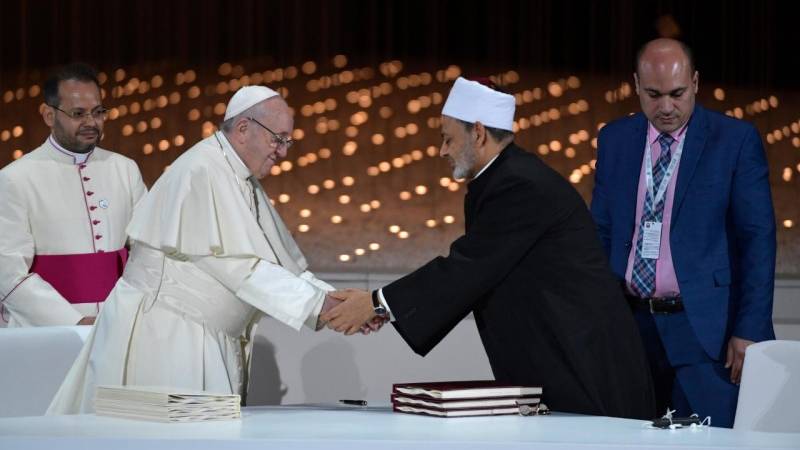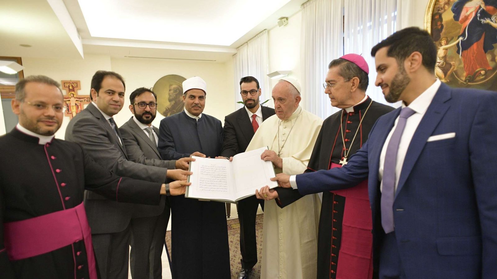 Ferenc pápa a béke követeként, 2019. február 3-5 között az Egyesült Arab Emirátusokba látogatott, ahol az Abu-Dzabiban megrendezett vallásközi találkozón egy közös nyilatkozatot írt alá a résztvevőkkel együtt az emberi testvériségről, a világbéke és a békés együttélés érdekében. Ferenc pápa híressé vált mondása a vallásközi találkozón: "Vagy közösen építjük a jövőt, vagy nem lesz jövő!"