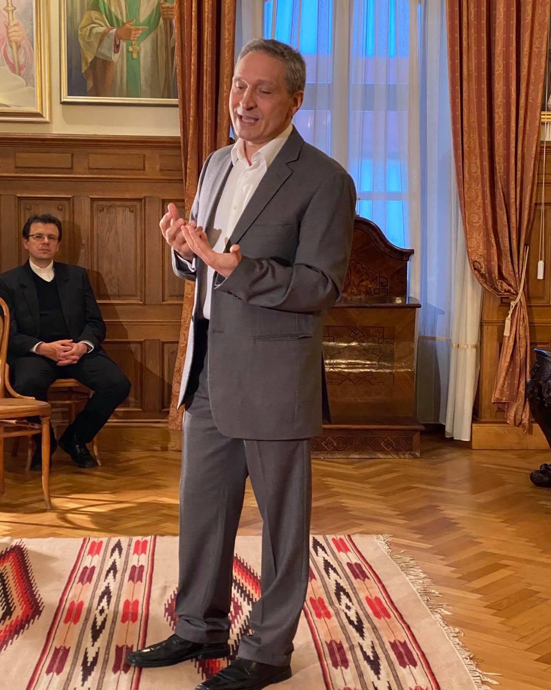 Délután az ünnepi köszöntés keretében dr. Kerekes László segédpüspök mondott beszédet, amelyben feltette a kérdést: milyen lenne az élet az egyházmegyénkben, ha nem történt volna meg a tavalyi szentelés. “Itt sok találgatás lenne: az idős, nyugdíjas főpásztorunk és segédpüspöke nehezen bírná a sok lelkipásztori munkát (hiszen csak most látjuk, milyen sok a tennivaló); talán arra gondolnánk, hogy a Vatikán összepaktált Bukaresttel, ezért késik a főpásztor kinevezése; lehet, hogy megkísértene a gondolat, hogy még az Egyházban sem védik a kisebbségeket; vagy szomorúak lennénk, hogy nincs senki, akit ki tudott volna nevezni Ferenc pápa főpásztornak – és még sok lehetséges választ találnánk erre az esetre.” Majd így folytatta: “nem kell ezeket összeírjuk, mert a Földön van víz, nem lapos a Föld, vannak szakemberek és van Főpásztorunk”. “Ezért kell hálásnak lennünk, meg kell köszönjük a jó Istennek, hogy rajtunk van a szeme, megesik rajtunk a szíve. Minden évben, ha nem is többet, de legalább egy szívből jövő köszönömöt hadd mondjunk el az érsek atyának is, amivel kifejezzük örömünket, megbecsülésünket és tiszteletünket” – javasolta a segédpüspök, és azt kötötte még a hallgatóság lelkére: “Krisztus által, Krisztussal és Krisztusban kell mindent végezni (csak ez lehetne egy életprogram az egész főegyházmegyénk számára)”; “fel kell vállalni a munkát maximálisan, keményen, mindenki ott, ahol van”; “ajándékként fogadjuk el egymást: a mi szeretetünkre van bízva a másik ember, a lelkipásztor, a közösség, akiből ki tudjuk szeretni a szépet és jót”. Ezt követően a jó Isten áldását kérte Kovács Gergely érsek főpásztori szolgálatára. Az ünnepi műsorban Bogdán Zsolt UNITER-díjas színművész és Oláh Mátyás csellóművész műsorát hallgathatták meg a jelenlevők. A Nyílt sebe vagyok a szívenszúrt világnak címen Dsida Jenő verseiből, leveleiből, prózájából Szugyiczky István által összeállított pódiumműsort 2014-ben mutatta be Bogdán Zsolt (Kovács Éva és Csutak Réka közreműködésével), e műsor verseiből kapott ízelítőt a hallgatóság, a szövegekre Oláh Mátyás csellóművész zenés válaszokat adott. Ezt követően Kovács Gergely szólt az ünneplőkhöz. Ad multos annos!
