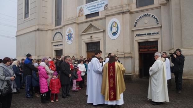 Kolozsváron Tamás József püspök zárta a Szent Mihály-templomban megnyitott Irgalmasság kapuját Krisztus király ünnepén az esti ünnepi szentmise keretében. Az asszisztencia, a papság és a hívek közül sokan az Irgalmasság kapuján keresztül léptek be a templomba, ezt követően zárultak az Irgalmasság szentévének elején megnyitott kapuk. Homíliájában a püspök a napi evangéliumból kiindulva arra kereste a választ: milyen király Krisztus, s melyek az isteni irgalmasság legalapvetőbb ismérvei? A Golgota hegyén a megfeszített Krisztus jobb, illetve bal oldalán levő lator emblematikusan mutatja azt a kétféle emberi magatartást, melyet az emberek az isteni irgalmassággal szemben tanúsítanak: a bal lator visszautasítja, a jobb pedig elfogadja az isteni kegyelmet, amelyre mindannyian rászorulunk. Kovács Sándor főesperes-plébános a szentmise végén arra figyelmeztetett, hogy az irgalmasság gyakorlása kell legyen keresztény mivoltunk mércéje. (Fábian Róbert)