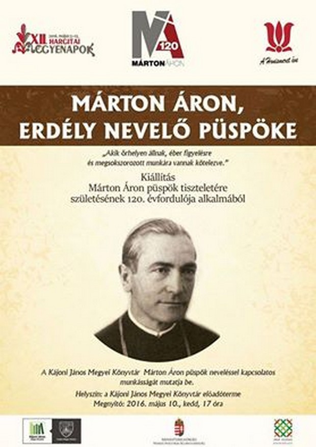 A csíkszeredai Kájoni János Megyei Könyvtár előadótermében 2016. május 10-én, délután 5 órakor nyitják meg a Márton Áron, Erdély nevelő püspöke című dokumentum- és fotókiállítást a XII. Hargitai Megyenapok keretében. A kiállítást a Márton Áron Emlékév jegyében szervezték, ahol a püspök neveléssel kapcsolatos szellemi hagyatékát helyezik előtérbe. Az ifjúsághoz szóló gondolatait, írásait mutatják be az Erdélyi Iskola és más korabeli kiadványok tükrében. A megnyitón közreműködnek a Segítő Máia Római Katolikus Gimnázium diákjai.