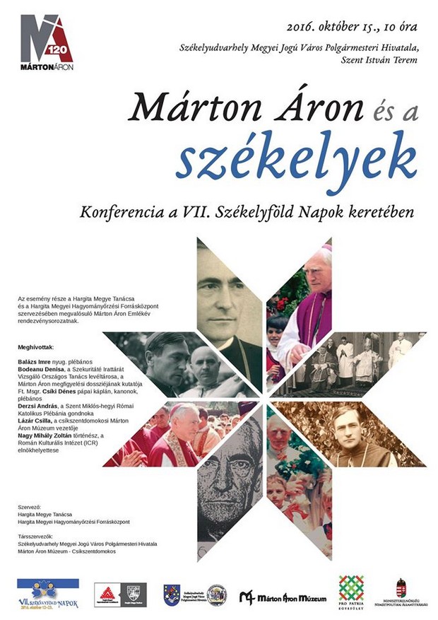 2016. október 15-én, szombaton délelőtt 10 órakor a Székelyudvarhely Megyei Jogú Város Polgármesteri Hivatala Szent István termében Márton Áron püspök és a székelyek címmel tartja a Hargita Megyei Hagyományőrzési Forrásközpont a VII. Székelyföld Napok rendezvénysorozat részeként megszervezett konferenciáját. Az esemény része a Hargita Megye Tanácsa és a Hargita Megyei Hagyományőrzési Forrásközpont szervezésében megvalósuló Márton Áron Emlékév rendezvénysorozatnak.