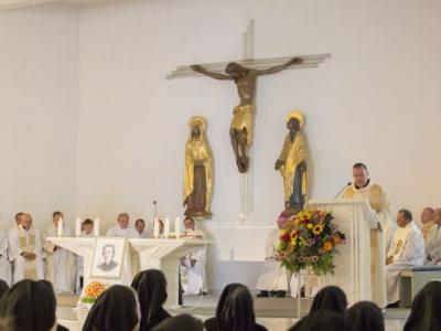 A prédikációban Jakubinyi érsek kiemelte boldog Paul Josef Nardini alapító által hátrahagyott feladatot: elvinni az örömhírt az embereknek a nevelői és betegápolói tevékenység által. Kérte a jelenlevőket, hogy imádkozzanak a nővérekért, hogy jelmondatunk szerint „továbbra is lángoljon bennük a krisztusi szeretet, és sürgesse őket ennek a szeretetnek a gyakorlása.”