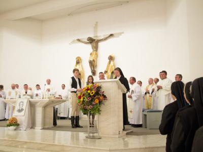 Az ünnepi szentmise délelőtt 11.30 órakor kezdődött, melynek főcelebránsa Kovács Sándor kanonok, kolozs-dobokai főesperes volt, aki az 1989-es politikai változások után helyi főesperesként a nővérek udvarhelyi letelepedését kezdeményezte és megszervezte. A mintegy 25 koncelebráló pap között volt dr. Rudolf Voderholzer regensburgi püspök, dr. Wilhelm Gegenfurtner superior, a nővérek általános elöljárója, valamint Mátyás Károly udvarhelyi főesperes is. Az evangélium után az egyházközség plébánosa, dr. Botár Gábor vetítéssel egybekötött előadást tartott a mallersdorfi szerzetes nővérek történetéről, a rend alapításáról, Erdélybe való letelepedéséről, valamint a kommunizmus utáni „feltámadásáról”.