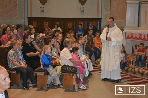Páduai Szent Antal ünnepén, a péntek esti szentmise keretében Urbán Erik templomigazgató megáldotta a gyermekeket a csíksomlyói kegytemplomban.