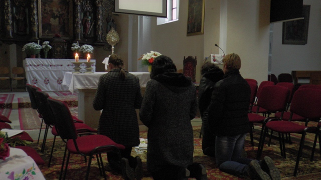 Az előadás után néhány résztvevő arról tett tanúságot, hogyan sikerült egy-egy nagyobb megpróbáltatás során kiengesztelődniük önmagukkal, Istennel, férjükkel vagy gyermekeikkel. A finom ebéddel a helyi női csoport tagjainak férjei kedveskedtek, a délutáni szünetet követően a résztvevők liturgikus táncban fejezhették ki ragaszkodásukat Isten iránt, majd egy újabb tanúságtétel után kézműves tevékenységekkel lazíthattak, alkothattak. A szentségimádás során a feleségek és édesanyák imában az Oltáriszentségben jelen levő Jézus elé vihették családtagjaikat, gondjaikat, elhatározásaikat, majd a szentmisében adtak hálát a nap ajándékaiért.