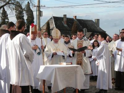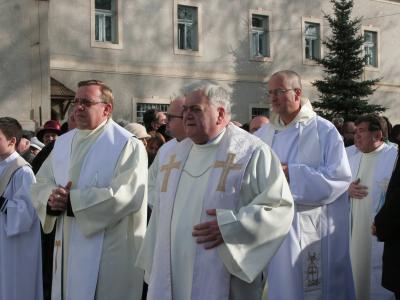 A szentmisét a kegytemplomban mutatták be. A liturgia bevezetőjeként az érsek megáldotta a vizet, és a bűnbánat jeleként ezzel hintette meg a kisbazilikát zsúfolásig megtöltő híveket. A főegyházmegye elöljárója prédikációjában a rendkívüli jubileumi év jelentőségéről, üzenetéről beszélt.