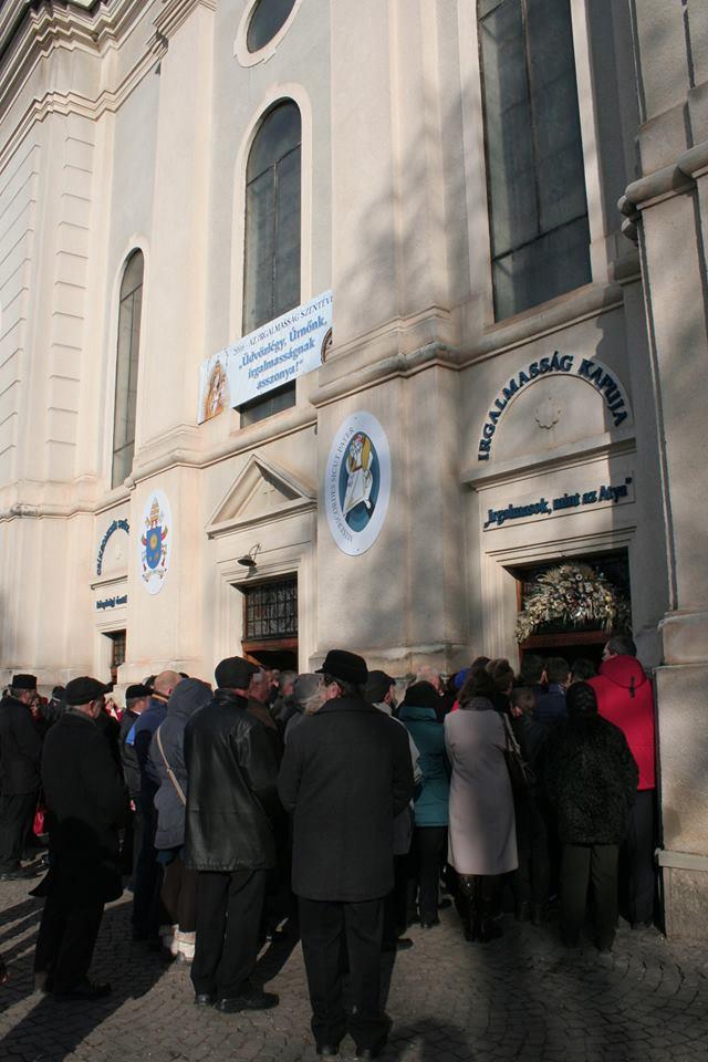 A csíksomlyói kegytemplomnál nyitották meg advent harmadik vasárnapján az irgalmasság első erdélyi szent kapuját. A Csíkszeredához tartozó ferences kegyhely temploma pápai kisbazilika, és a Szűzanya 500 éves kegyszobrának köszönhetően nemcsak a Gyulafehérvári Római Katolikus Főegyházmegye, hanem a nemzet legnagyobb zarándokhelye is. Ezért jelölte Jakubinyi György érsek ezt a templomot az Irgalmasság évének fontos zarándokhelyéül is.