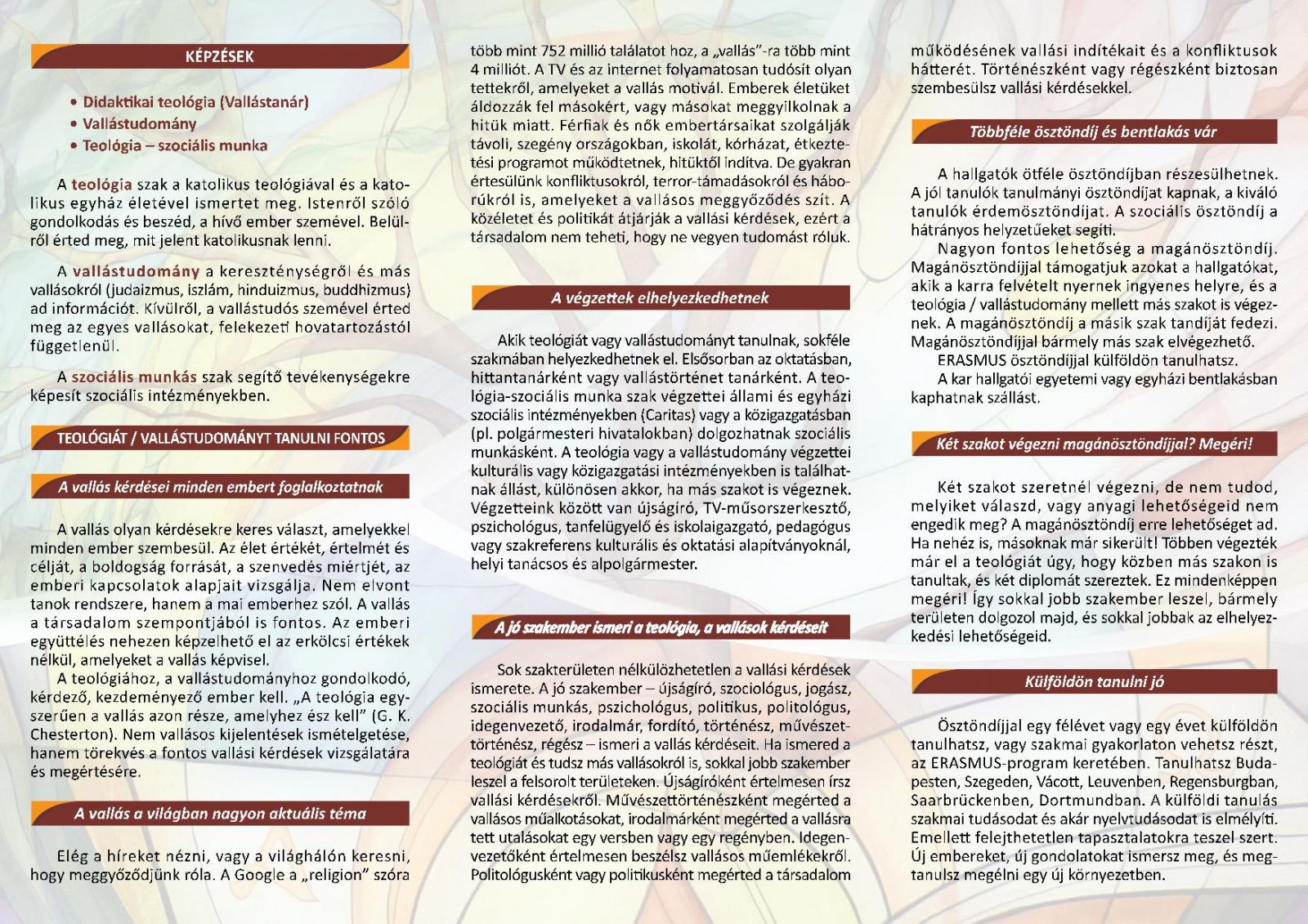 – Mert a kereszténység, a zsidóság, az iszlám, a keleti vallások, az új vallási mozgalmak ismerete elengedhetetlen nagyon sok szakmában. A vallástudomány kiváló segítség (leendő) tanároknak, újságíróknak, szociológusoknak, jogászoknak, szociális munkásoknak, pszichológusoknak, politikusoknak és politológusoknak, irodalmároknak, művészettörténészeknek, a közigazgatásban dolgozóknak.