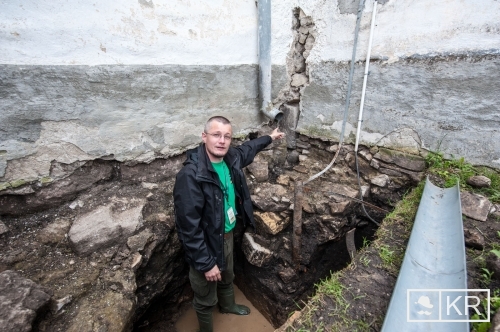 Kósa az omladozó feljáró mellett ásott gödörben megmutatta, meddig nyúlik le az alapozás. Amint elárulta, a múlt században felhúzott épületrész építői az alapozásnál nem ástak eléggé mélyre. Mivel a 18. század közepéig a templom mellé temetkeztek, meg volt bolygatva a föld, emiatt süllyedt be a fal. A szakember beszélt arról is, hogy a feltárt sírokban talált csontokat a múzeum raktározza, rendszerezi, és ha lesz rá pénz, ezek antropológiai összehasonlítási kutatások tárgyát képezhetik. Azt is megjegyezte, hogy a gótikus korban épített templom kívül-belül ki volt festve, ezeket a szekkókat részben feltárták, de restaurálásuk még nem történt meg.