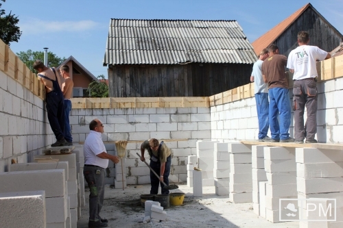 „Pörög a kezük alatt a munka, azért is, mert egy nagyon jól összeszokott csapat. Az iskolában és külső munkákon is együtt dolgoznak. Ha megtanulják a tempót, teljesíteni tudják majd az elvárások szerinti minőséget, és akkor már előnnyel indulnak az életbe. Itt tanulhatnak, elleshetik a dolgokat. A kezünk alá dolgoznak, de vannak közöttük, akiknek mi adogatjuk az építőanyagokat” – mutatta be csapatát Szabó Csaba mester. A Szent Anna-otthon udvarán négy nap alatt emelték fel a 75 négyzetméter alapterületű építmény falazatát, zsaluztak, vasszereltek, betonoztak. A födém elkészítése marad másra, de ha elkészül, garázst és raktárt alakítanak ki az épületben a háziak. „Rövid, tömör és tartalmas program volt. A lényeg benne, hogy mindenki adott valamit. Ez jó érzés” – összegzett a mesterember.