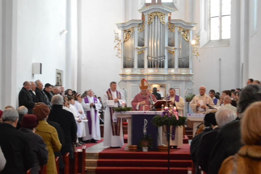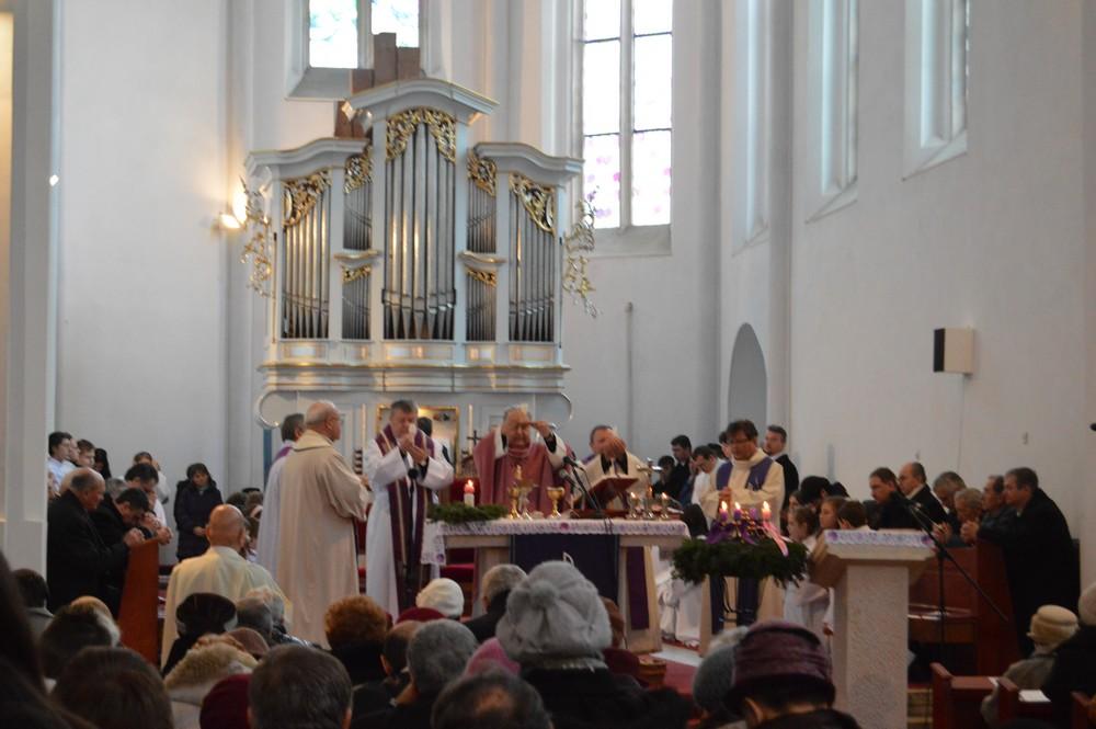 Jakubinyi György érsek, akit Varga Rezső főegyházmegyei vagyonkezelő kísért el a gyulafehérvári központból, miután a szentmise elején a ministránsok, az egyháztanács és a koncelebráló papok kíséretében a templomból a kinti keresztút mentén a Kálvária-kápolnához vonult, ott szenteltvízzel meghintette és imában megáldotta a helyet, mindazokat, akik helyreállítását támogatták, s akik itt imádkoztak/imádkoznak. Eközben az egyházközség mindig friss erőkkel is gazdagodó kórusa dicsőítette Istent gyönyörű énekekkel, majd folytatódott a szentmise. Homíliájában a főegyházmegye érseke az adventben – és természetesen nem csak ekkor – aktuális lemondásokra és jó cselekedetekre hívta fel a figyelmet, ezek közt a különféle betegségekben szenvedők testi és lelki támogatására, ami különösen akkor érdemszerző, ha az valódi keresztény szeretetből, a másikra figyelésből fakad, a szenvedőnek próbál örömet szerezni és nem annak lelki kényelmét, megnyugtatását szolgálja, aki az a jó cselekedetet teszi.