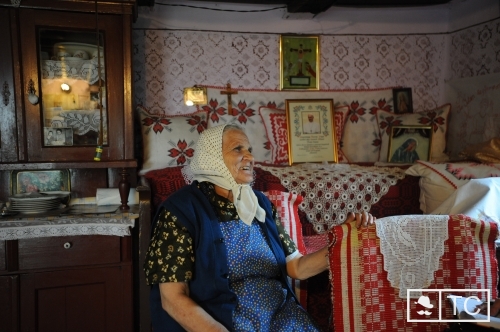 A kis lakószoba díszítményein meglátszik keze munkája. Szőtt, varrt, horgolt, sokat kézimunkázott. Összetartottak a szomszédsággal, most inkább televíziót néznek, rádiót hallgatnak – jegyezte meg. Lánya Homoródalmáson lakik, fiáékkal él egy lakásban. Öt dédunokája van.