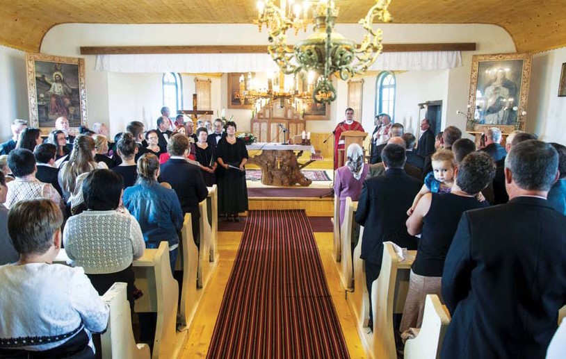 Különlegesen szépek a farönkökből kialakított, egyedi fő- és mellékoltárok. A képek keretét is újrafaragta a falu szülötte, a Szovátán élő Károly János. A korondi Fábián Gergely támogatta a márvány keresztelőkút beszerzését. A helyi közbirtokosság újonnan állíttatott keresztet az oltár mellé. A búcsús szentmise ünnepi szónoka, Bajkó Norbert szovátai segédlelkész elmélkedésében kiemelte: tudjunk hálát adni Istennek az ünnepért. Kössük össze a testit és a lelkit, hogy harmóniában tudjunk szolgálni a Földön. Ugyanakkor megélt hitünkkel adjunk példát másoknak.