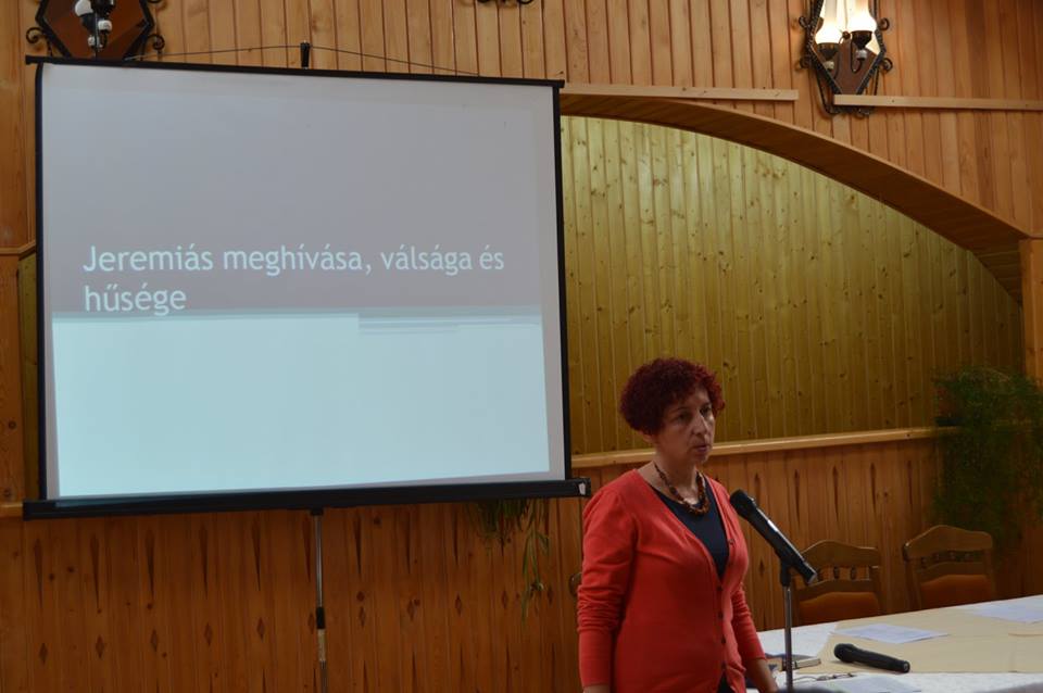 Zamfir Korinna, a Babeș-Bolyai Tudományegyetem Római Katolikus Teológiai karának tanára Jeremiás meghívása, válsága és hűsége címmel tartott előadást a jelenlevők számára. Összefoglalta annak az időszaknak a sajátosságait, történelmi viszonyait és társadalmi miliőjét, melyben a próféta élt, s tevékenykedett. Júda összeomlása, a babiloni fogság, a többszörös deportálás (Kr.e. 597, 586, 582), majd Kr.e. 586-ban a kultuszhely, a jeruzsálemi templom elpusztulása mind mélyen rányomták bélyegüket Jeremiás sorsának alakulására. Jeremiás ismert meghívástörténete azt mutatja, hogy a próféta élete első pillanatától Istené, s hiába hozza fel mentségéül (mint számos más meghívástörténet esetében) alkalmatlanságát, meg kell tapasztania, hogy szavai Istentől erednek, s bármennyire is ellenállást fog tapasztalni, Isten mellette áll. Jeremiás panaszai, vallomásai azt mutatják, hogy Istent szabad az embernek megkérdezni, elmondani, hogy mi miért történik vele.