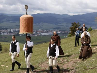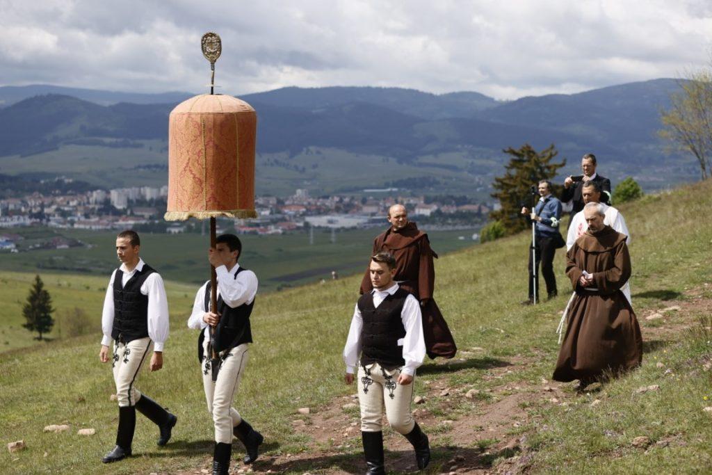 A Kisebb Testvérek Szent István Királyról nevezett Erdélyi Tartománya nevében örömmel köszöntelek benneteket, ezúttal a szokásostól eltérően, az online térben. Tavaly a nyereg-katedrálisban üdvözöltelek titeket, abban a katedrálisban, amelyet a Kis- és Nagy-Somlyó hegyek úgy ölelnek körül, mint bennünket Mária szeretete és mosolya. Ez a katedrális az idén sokszorosára növekedett, hisz ma, a fogadalmi búcsúnk ünnepén, az egész Kárpát-medence egy templommá, egy nagy katedrálissá vált, amelynek tartópillére Kárpátalja, Felvidék, Őrvidék, Délvidék–Vajdaság, Bánság, Partium, az Anyaország, a moldvai csángó vidék, Erdély, amelynek oltárán ott áll a Napbaöltözött Asszony, akit mi úgy ismerünk Csíksomlyói Segítő Szűz, karján a Kisdeddel. Az Édesanya nemcsak azt várja, hogy gyermekei meglátogassák, hanem az idei évben, az Eucharisztia évében, amely egységünknek a kifejezője, ő maga látogat el hozzátok, s Mária alázatosságában háttérbe vonul, és Szent Fiát adja, aki valóságosan jelen van az Oltáriszentségben. Az apostolok Jézus feltámadása után félelmükben bezárkóztak, önkéntes karanténba vonultak, „otthon maradtak”, de az Úr nem feledkezett meg róluk, elküldte számukra a Szentlelket, hogy megerősödve tegyenek tanúbizonyságot. A Szentlélek szállt le rád, Mária, a Szentlélek tölt el minket is, megerősítve bennünket, hogy rendületlenül hűek maradjunk hitünkhöz, és fogadjuk meg: visszatérünk, Szűzanyánk, csíksomlyói szentélyedbe. Szétszórtan és szétszaggatottan vagyunk, de az anyanyelvünkön elmondott imák összefűznek bennünket. Ezzel a lelkülettel imádkozzunk és kapcsolódjunk be közösen az ünnepi szentmisébe – mondotta Urbán Erik OFM.