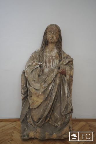 Sokan látták korábban is a Mária-szobrot. A tetőzet munkálatai során a homályos térből hozták le. A Gyulafehérvári Érsekség művészettörténésze, Hegedűs Enikő elmondta: a hársfából készült alkotás Máriát ábrázolja térdeplő formában, magassága 1,20 méter. Az orr-rész sérült, a kezek hiányoznak. Szárnyas oltárnak lehetett a része, a középszekrényben helyezkedhetett el. Béta, Dobó, Vágás régi katolikus jelenlétére utal.
